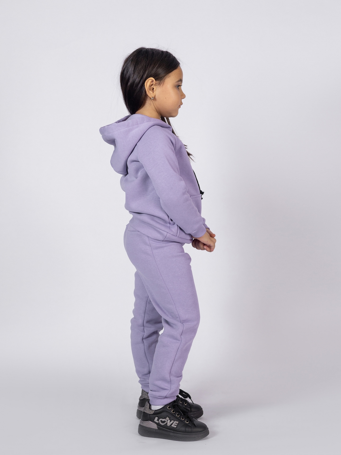 296-СР. Свитшот с капюшоном + Штаны, хлопок 65%, 35% ПЭ, 3-х нитка (начес) сирень 122.128.134.140
